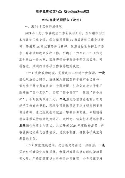 【七哥公文】2025年:2024年度述职报告(政法)+更多免费公文+VX:QiGeGongWen2024+更多免费公文+VX:QiGeGongWen2024
