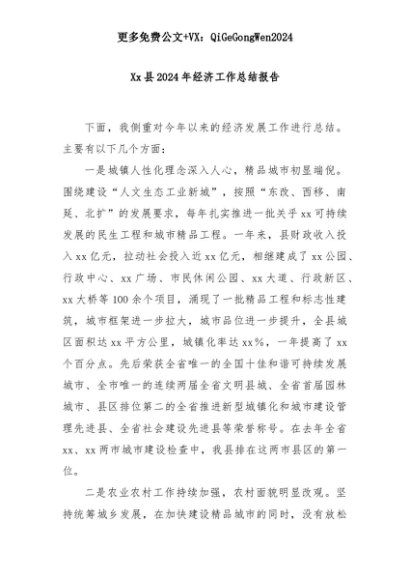 【七哥公文】2025年:Xx县2024年经济工作总结报告+更多免费公文+VX:QiGeGongWen2024+更多免费公文+VX:QiGeGongWen2024