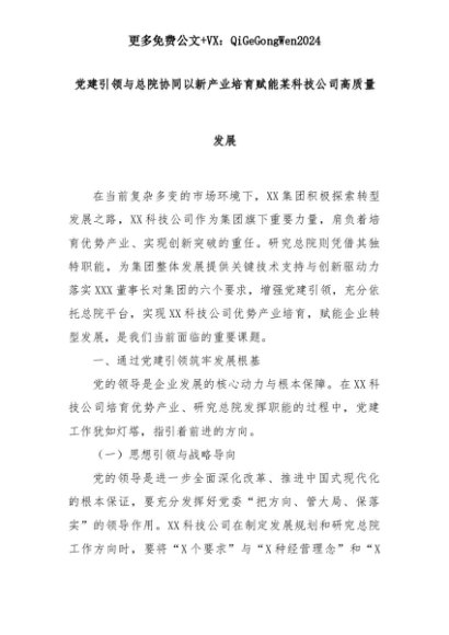 【七哥公文】2025年:党建引领与总院协同以新产业培育赋能某科技公司高质量发展+更多免费公文+VX:QiGeGongWen2024+更多免费公文+VX:QiGeGongWen2024