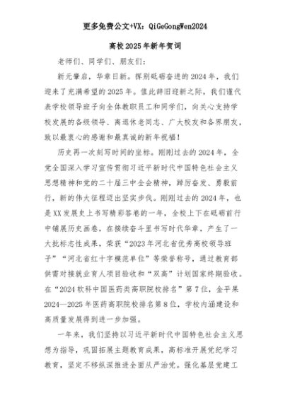 【七哥公文】2025年:高校2025年新年贺词+更多免费公文+VX:QiGeGongWen2024+更多免费公文+VX:QiGeGongWen2024
