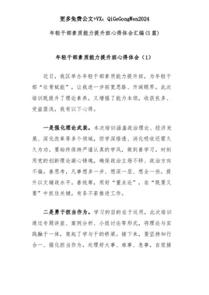 【七哥公文】2025年:(5篇)年轻干部素质能力提升班心得体会汇编+更多免费公文+VX:QiGeGongWen2024+更多免费公文+VX:QiGeGongWen2024