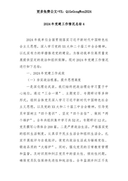 【七哥公文】2025年:2024年党建工作情况总结4+更多免费公文+VX:QiGeGongWen2024+更多免费公文+VX:QiGeGongWen2024