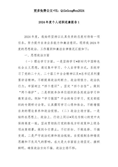 【七哥公文】2025年:2024年度个人述职述廉报告1+更多免费公文+VX:QiGeGongWen2024+更多免费公文+VX:QiGeGongWen2024