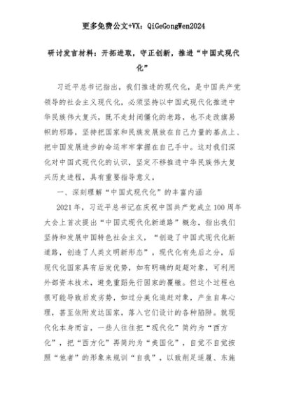 【七哥公文】2025年:研讨发言材料:开拓进取,守正创新,推进“中国式现代化”+更多免费公文+VX:QiGeGongWen2024+更多免费公文+VX:QiGeGongWen2024