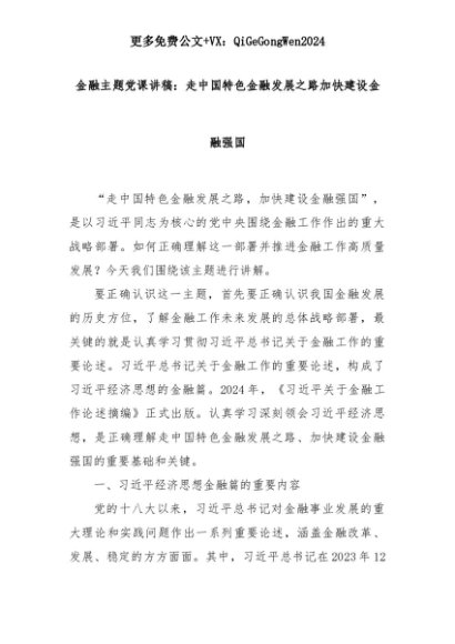 【七哥公文】2025年:金融主题党课讲稿:走中国特色金融发展之路加快建设金融强国+更多免费公文+VX:QiGeGongWen2024+更多免费公文+VX:QiGeGongWen2024