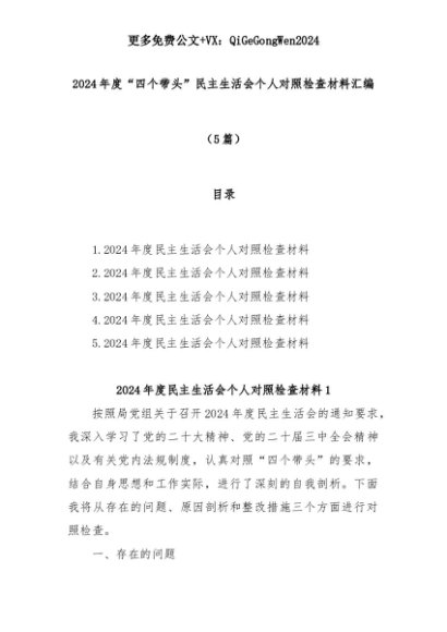【七哥公文】2025年:(5篇)2024年度“四个带头”民主生活会个人对照检查材料汇编+更多免费公文+VX:QiGeGongWen2024+更多免费公文+VX:QiGeGongWen2024