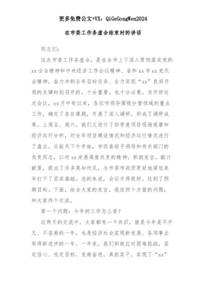 【七哥公文】2025年:在市委工作务虚会结束时的讲话+更多免费公文+VX:QiGeGongWen2024+更多免费公文+VX:QiGeGongWen2024