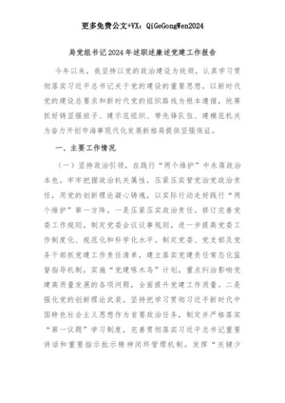 【七哥公文】2025年:局党组书记2024年述职述廉述党建工作报告+更多免费公文+VX:QiGeGongWen2024+更多免费公文+VX:QiGeGongWen2024