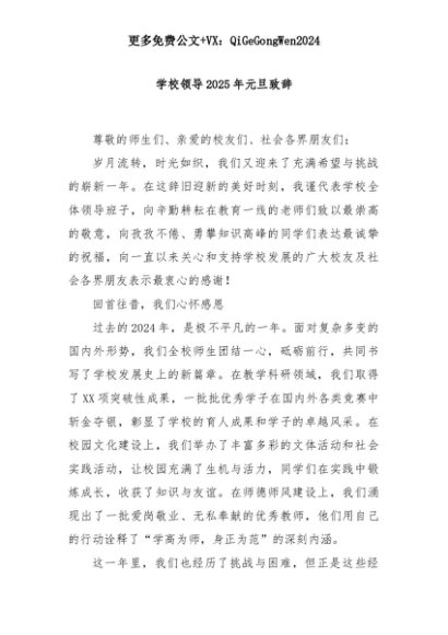 【七哥公文】2025年:学校领导2025年元旦致辞+更多免费公文+VX:QiGeGongWen2024+更多免费公文+VX:QiGeGongWen2024