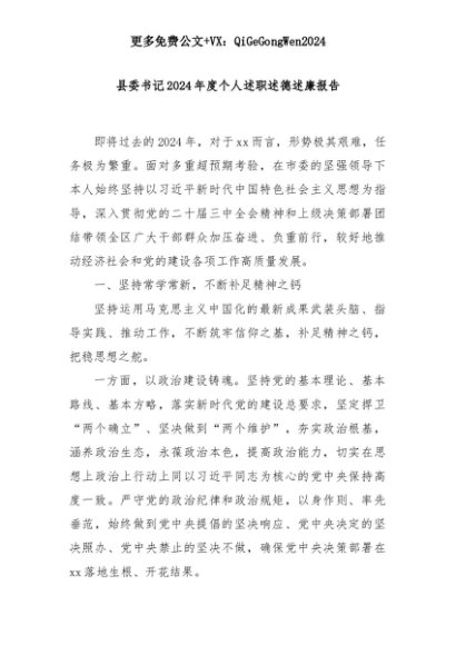 【七哥公文】2025年:县委书记2024年度个人述职述德述廉报告+更多免费公文+VX:QiGeGongWen2024+更多免费公文+VX:QiGeGongWen2024