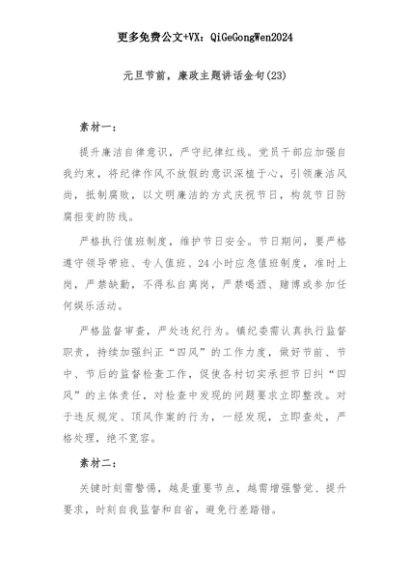 【七哥公文】2025年:元旦节前,廉政主题讲话金句(23)+更多免费公文+VX:QiGeGongWen2024+更多免费公文+VX:QiGeGongWen2024