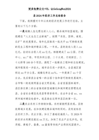 【七哥公文】2025年:县2024年经济工作总结报告+更多免费公文+VX:QiGeGongWen2024+更多免费公文+VX:QiGeGongWen2024