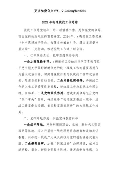 【七哥公文】2025年:2024年街道统战工作总结+更多免费公文+VX:QiGeGongWen2024+更多免费公文+VX:QiGeGongWen2024