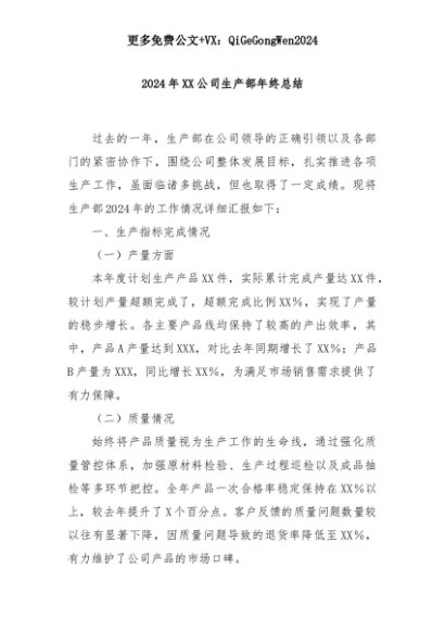 【七哥公文】2025年:2024年XX公司生产部年终总结+更多免费公文+VX:QiGeGongWen2024+更多免费公文+VX:QiGeGongWen2024