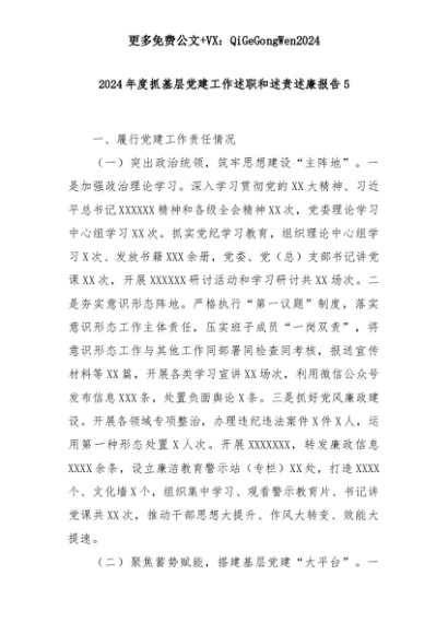 【七哥公文】2025年:2024年度抓基层党建工作述职和述责述廉报告5+更多免费公文+VX:QiGeGongWen2024+更多免费公文+VX:QiGeGongWen2024