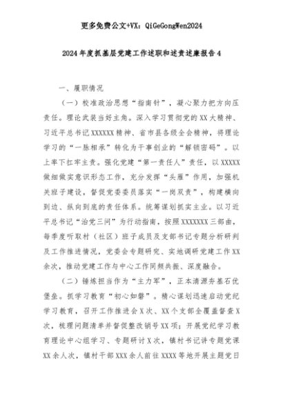 【七哥公文】2025年:2024年度抓基层党建工作述职和述责述廉报告4+更多免费公文+VX:QiGeGongWen2024+更多免费公文+VX:QiGeGongWen2024