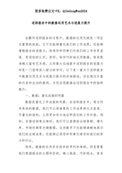 【七哥公文】2025年:述职报告中的数据运用艺术与说服力提升+更多免费公文+VX:QiGeGongWen2024+更多免费公文+VX:QiGeGongWen2024