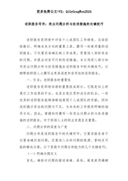 【七哥公文】2025年:述职报告写作:突出问题分析与改进措施的关键技巧+更多免费公文+VX:QiGeGongWen2024+更多免费公文+VX:QiGeGongWen2024