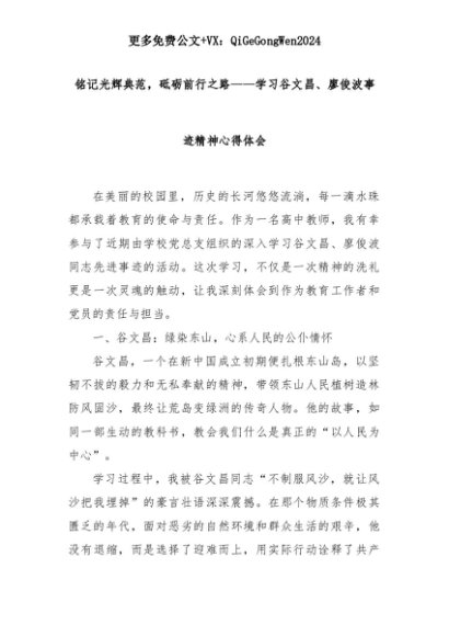 【七哥公文】2025年:铭记光辉典范,砥砺前行之路——学习谷文昌、廖俊波事迹精神心得体会+更多免费公文+VX:QiGeGongWen2024+更多免费公文+VX:QiGeGongWen2024