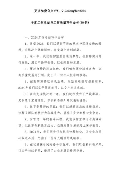 【七哥公文】2025年:(30例)年度工作总结与工作展望写作金句+更多免费公文+VX:QiGeGongWen2024+更多免费公文+VX:QiGeGongWen2024