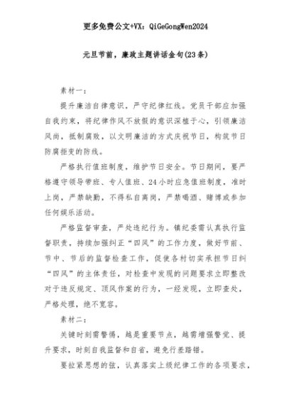 【七哥公文】2025年:(23条)元旦节前,廉政主题讲话金句+更多免费公文+VX:QiGeGongWen2024+更多免费公文+VX:QiGeGongWen2024