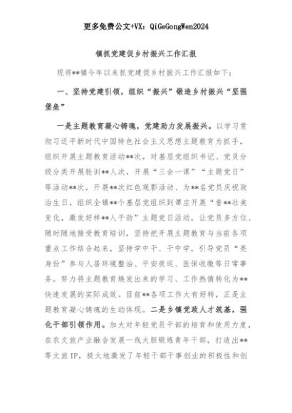 【七哥公文】2025年:镇抓党建促乡村振兴工作汇报+更多免费公文+VX:QiGeGongWen2024+更多免费公文+VX:QiGeGongWen2024