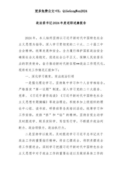 【七哥公文】2025年:政法委书记2024年度述职述廉报告+更多免费公文+VX:QiGeGongWen2024+更多免费公文+VX:QiGeGongWen2024