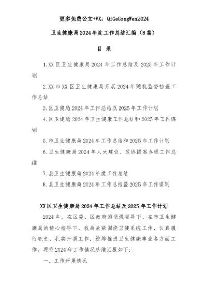 【七哥公文】2025年:(8篇)卫生健康局2024年度工作总结汇编+更多免费公文+VX:QiGeGongWen2024+更多免费公文+VX:QiGeGongWen2024