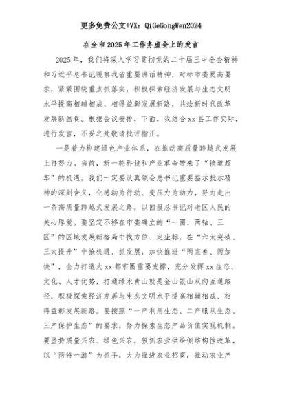 【七哥公文】2025年:在全市2025年工作务虚会上的发言+更多免费公文+VX:QiGeGongWen2024+更多免费公文+VX:QiGeGongWen2024
