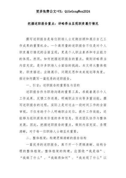 【七哥公文】2025年:把握述职报告重点:详略得当呈现职责履行情况+更多免费公文+VX:QiGeGongWen2024+更多免费公文+VX:QiGeGongWen2024