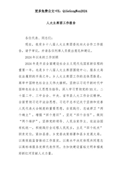 【七哥公文】2025年:人大主席团工作报告+更多免费公文+VX:QiGeGongWen2024+更多免费公文+VX:QiGeGongWen2024