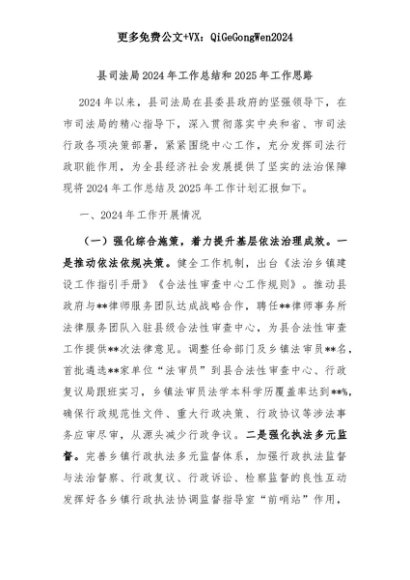 【七哥公文】2025年:县司法局2024年工作总结和2025年工作思路+更多免费公文+VX:QiGeGongWen2024+更多免费公文+VX:QiGeGongWen2024