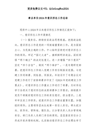【七哥公文】2025年:事业单位2024年意识形态工作总结+更多免费公文+VX:QiGeGongWen2024+更多免费公文+VX:QiGeGongWen2024