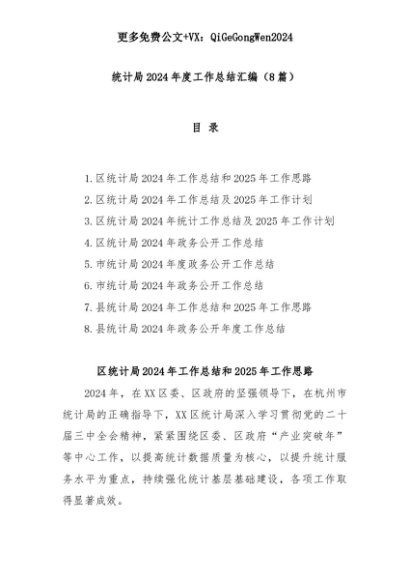 【七哥公文】2025年:(8篇)统计局2024年度工作总结汇编+更多免费公文+VX:QiGeGongWen2024+更多免费公文+VX:QiGeGongWen2024