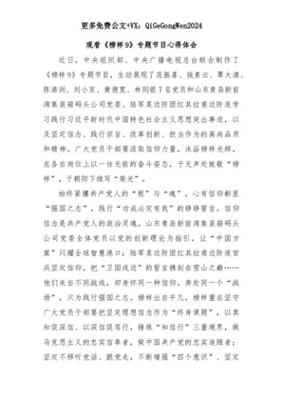 【七哥公文】2025年:观看《榜样9》专题节目心得体会+更多免费公文+VX:QiGeGongWen2024+更多免费公文+VX:QiGeGongWen2024