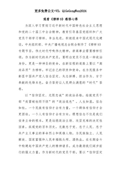 【七哥公文】2025年:观看《榜样9》感悟心得+更多免费公文+VX:QiGeGongWen2024+更多免费公文+VX:QiGeGongWen2024