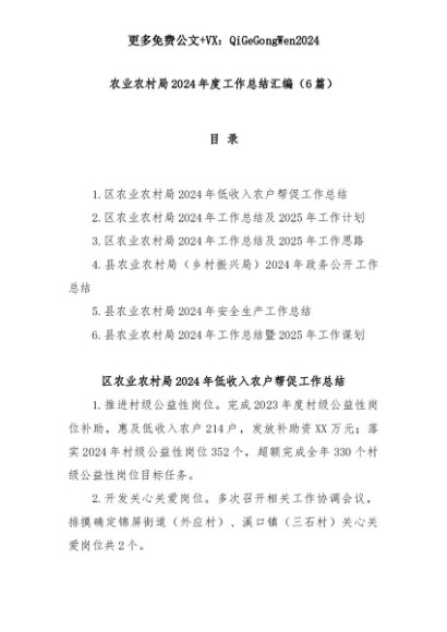 【七哥公文】2025年:(6篇)农业农村局2024年度工作总结汇编+更多免费公文+VX:QiGeGongWen2024+更多免费公文+VX:QiGeGongWen2024
