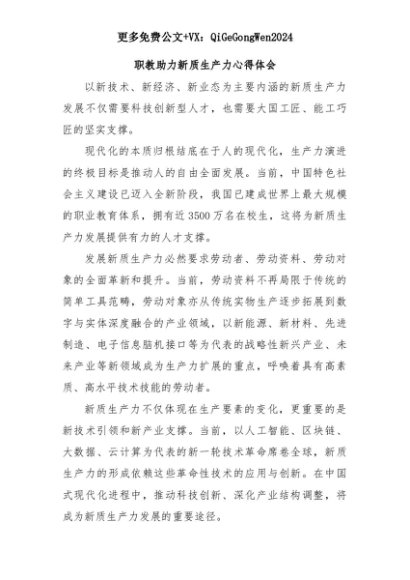 【七哥公文】2025年:职教助力新质生产力心得体会+更多免费公文+VX:QiGeGongWen2024+更多免费公文+VX:QiGeGongWen2024