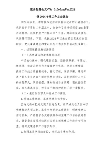 【七哥公文】2025年:镇2024年度工作总结报告+更多免费公文+VX:QiGeGongWen2024+更多免费公文+VX:QiGeGongWen2024