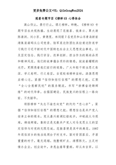 【七哥公文】2025年:观看专题节目《榜样9》心得体会+更多免费公文+VX:QiGeGongWen2024+更多免费公文+VX:QiGeGongWen2024