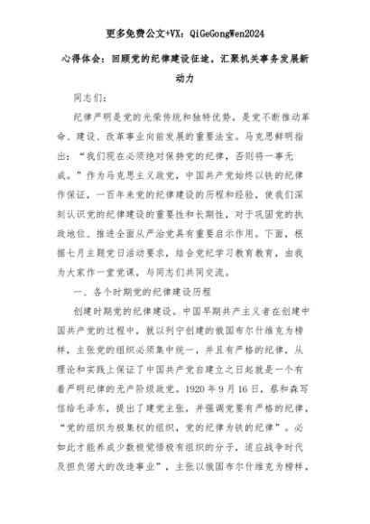 【七哥公文】2025年:心得体会:回顾党的纪律建设征途,汇聚机关事务发展新动力+更多免费公文+VX:QiGeGongWen2024+更多免费公文+VX:QiGeGongWen2024