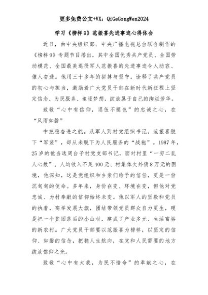 【七哥公文】2025年:学习《榜样9》范振喜先进事迹心得体会+更多免费公文+VX:QiGeGongWen2024+更多免费公文+VX:QiGeGongWen2024