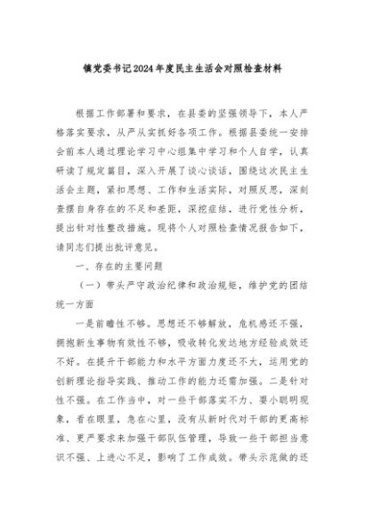 / 【七哥公文】2025年:镇党委书记2024年度民主生活会对照检查材料+更多免费公文+VX:QiGeGongWen2024