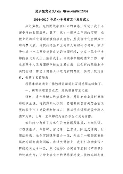【七哥公文】2025年:2024-2025 年度小学德育工作总结范文 (2)+更多免费公文+VX:QiGeGongWen2024+更多免费公文+VX:QiGeGongWen2024