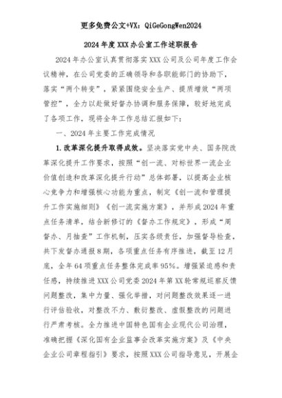 【七哥公文】2025年:2024年度XXX办公室工作述职报告+更多免费公文+VX:QiGeGongWen2024+更多免费公文+VX:QiGeGongWen2024