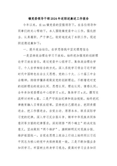 / 【七哥公文】2025年:镇党委领导干部2024年述职述廉述工作报告+更多免费公文+VX:QiGeGongWen2024