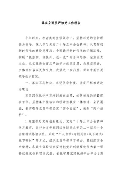 / 【七哥公文】2025年:落实全面从严治党工作报告+更多免费公文+VX:QiGeGongWen2024
