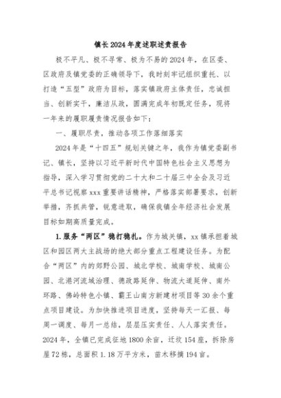 / 【七哥公文】2025年:镇长2024年度述职述责报告+更多免费公文+VX:QiGeGongWen2024