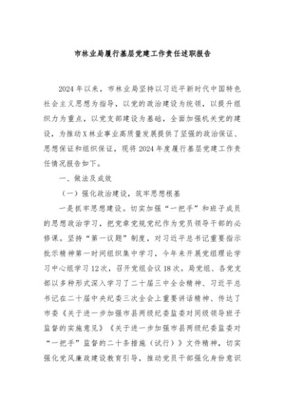 / 【七哥公文】2025年:市林业局履行基层党建工作责任述职报告+更多免费公文+VX:QiGeGongWen2024