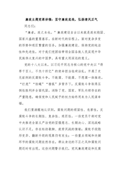 / 【七哥公文】2025年:廉政主题党课讲稿:坚守廉政底线,弘扬清风正气+更多免费公文+VX:QiGeGongWen2024